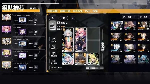 于新手前期进行开荒极为好用,在该队伍中存有三个推条角色,一个拉条角色,再加上其自身原本就具备的加攻加伤等增益效果以及充电护盾等辅助功能一应俱全,围绕刃齿的多段输出构建成单核控条队伍,无论是针对 BOSS 战,还是在 PVP 中都非常适用。