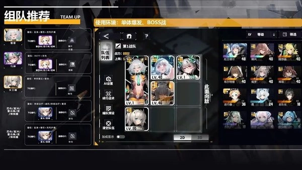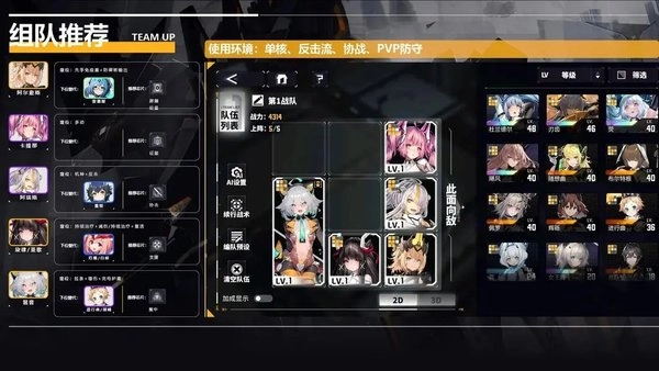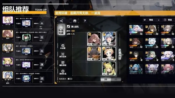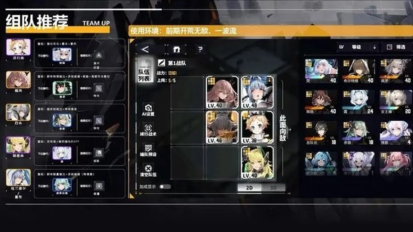 乃是开荒推图的小能手,飓风和杜兰德尔的技能属于群体输出,进行曲和随想曲都带有全体增益技能,另外再搭配一个刃齿的多段单体,用于补伤害或者应对 BOSS 场景,只要养成进度跟得上,一波流轻松带走敌人。
