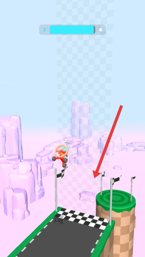 3、操控小车接近终点时,要把握好跳跃的时机,越过一道道障碍,精准地落在方格旗所标记的终点区域。