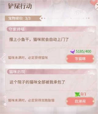 5、除了单身贵喵,在蓝颜偶遇过程中也会概率出现获得双胞胎猫咪的情况,但是在蓝颜的铲屎行动中,花费猫薄荷就可以直接获得双胞胎猫咪哦(猫薄荷通过推送礼包获取)另外在铲屎行动中也可以直接使用钻石选择固定的蓝颜获取猫咪(每次花费钻石后,下一次会增加相应的钻石哦)