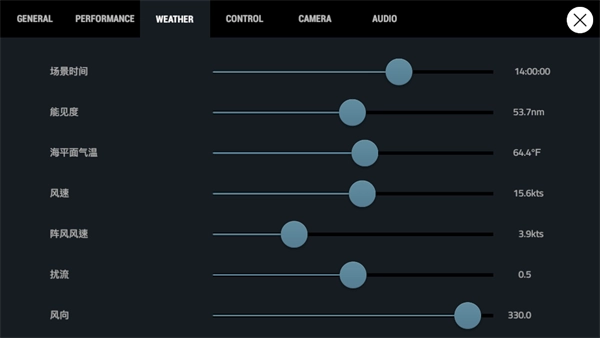 (3)天气设置,航母降落时合适风向330,机场降落时合适风向300