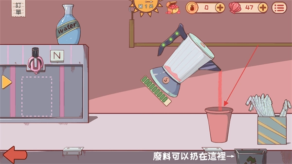 拥有各种不同口味的果汁可供调配,不同食材搭配能组合出风味,需根据喜好调整配方,调配过程简单却充满趣味,解锁更多美味果汁。