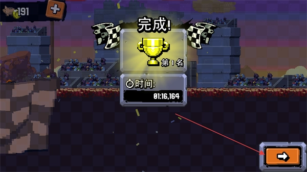 4、第一个冲过终点线,拿下第1名,就能领取金币奖励,点击箭头按钮接着挑战下一关。