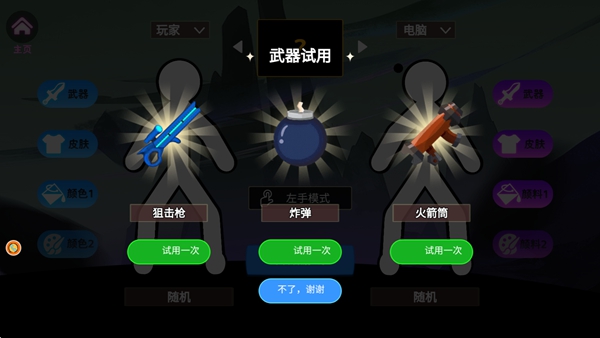 火柴人大战怪兽最新版的战斗场景会随机切换,每次进入战斗都能让玩家收获全新体验。武器由系统随机分配,若想快速击败敌人,就得巧妙利用地形优势——例如部分场景设有海洋,你可以引诱敌人靠近悬崖边缘,再将其击落至海中,这样就能赢得这场战斗的胜利!