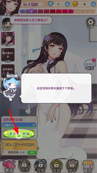 2、点击进入下一阶段按钮,可提升与角色的关系等级,这是深化角色羁绊的核心操作,提升时需满足关系进度要求。