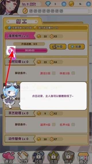 整体玩法偏向休闲,无需复杂操作,工作获取金币、提升好感度的流程简单易上手,适配碎片化的时间,享受养成乐趣。