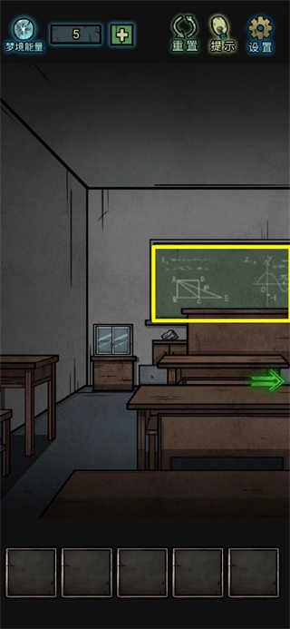 3、随后前往教室左侧,会看到黑板上有一排荧光绿的字迹,用湿抹布擦拭掉这些字迹后,黑板上会显现出一串数字“9274”,这串数字与教室右侧窗台上的铁盒相对应,只需按照罗马数字将铁盒转动到正确数字即可。