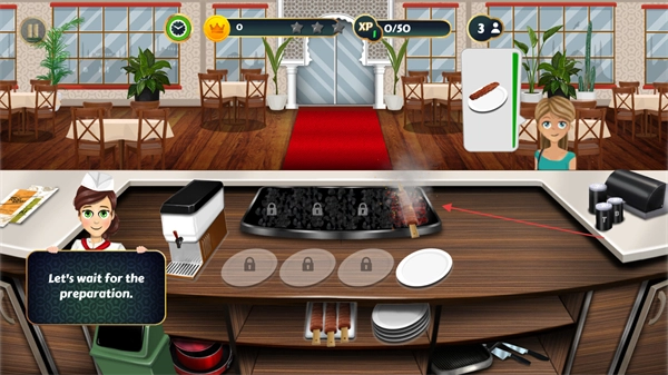 1、等待食材在烤架上完成烤制,界面会有提示Let's-wait-for-the-preparation。