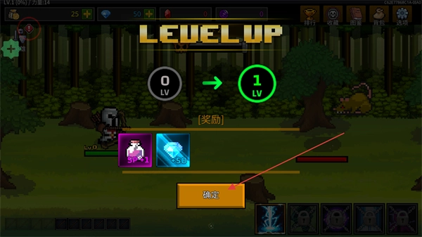 4、升级后可领取角色、钻石等奖励,点击确定即可继续游戏,助力提升角色实力。