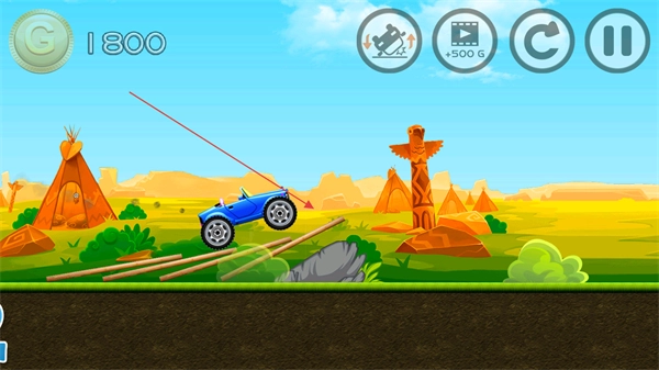 1、操控蓝色赛车在赛道上行驶,注意躲避岩石、木桩等障碍物,利用赛道上的斜坡和木杆辅助行驶。