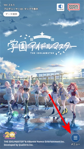1、启动学园偶像大师游戏,点击界面右下角的メニュー菜单按钮。