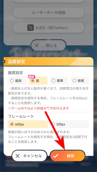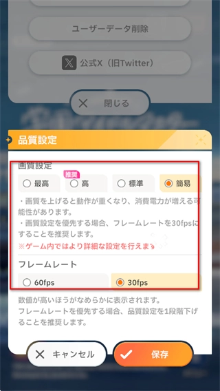 3、在画质设置区域,能够选择画质选项,并且可以调整フレームレート(帧率)。