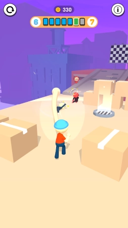 一个橡皮材质的小人,外形像小朋友;当遇到对手时,玩家得操控这个小人快速挥拳,把眼前的对手打倒。