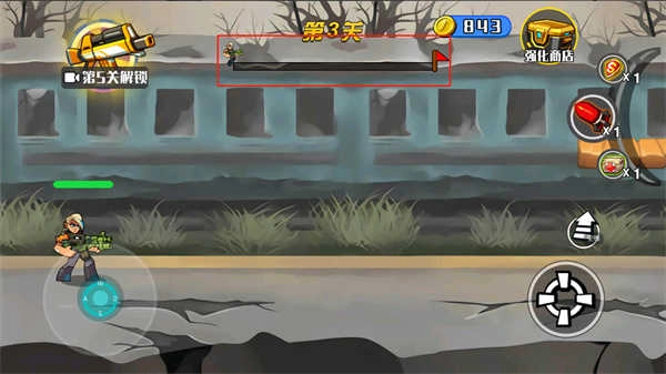 游戏中玩家还可以点击攻击键上的按钮来进行跳跃,需要注意的是游戏上方的游戏关卡的进度条。