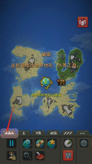 7、如下图所示,这个编辑按钮能够对世界地形、水等内容进行修改。