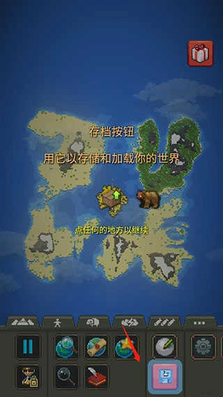 4、第一个就是存档按钮,可以存储和加载你的世界;