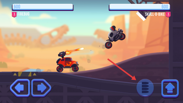 1进入游戏主界面后,选择那辆橙色的FIREBUG战车,点击PLAY按钮,系统会匹配到驾驶SKULL-O-BIKE摩托的对手,随后即可开启赛道上的对战。