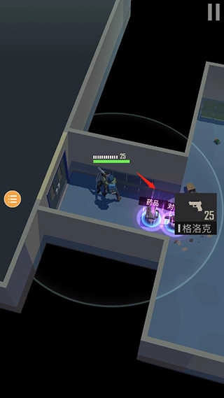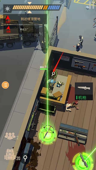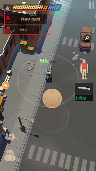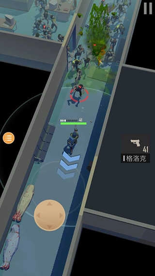 控制虚拟按钮在地图上移动就行,遇到僵尸的时候只要在射程范围内都能自动瞄准射击。