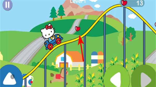 4、进入新关卡后,保持前一关的操控节奏,借助加速、减速按钮来适配新赛道的地形,同时兼顾收集爱心这一双重目标。