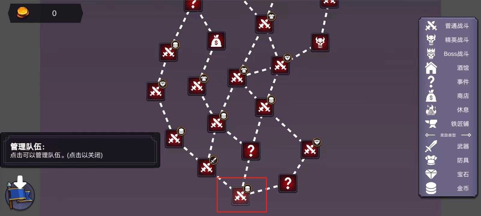3、点击左下角按钮可管理队伍,之后点击下图所示位置就能进入战斗。