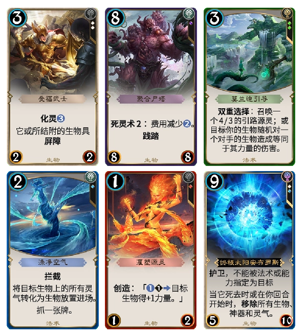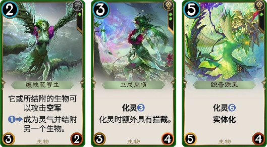 绿色阵营依靠丰富的化灵效果与灵气实体化的能力,彰显出生命力绵延不绝的特质;