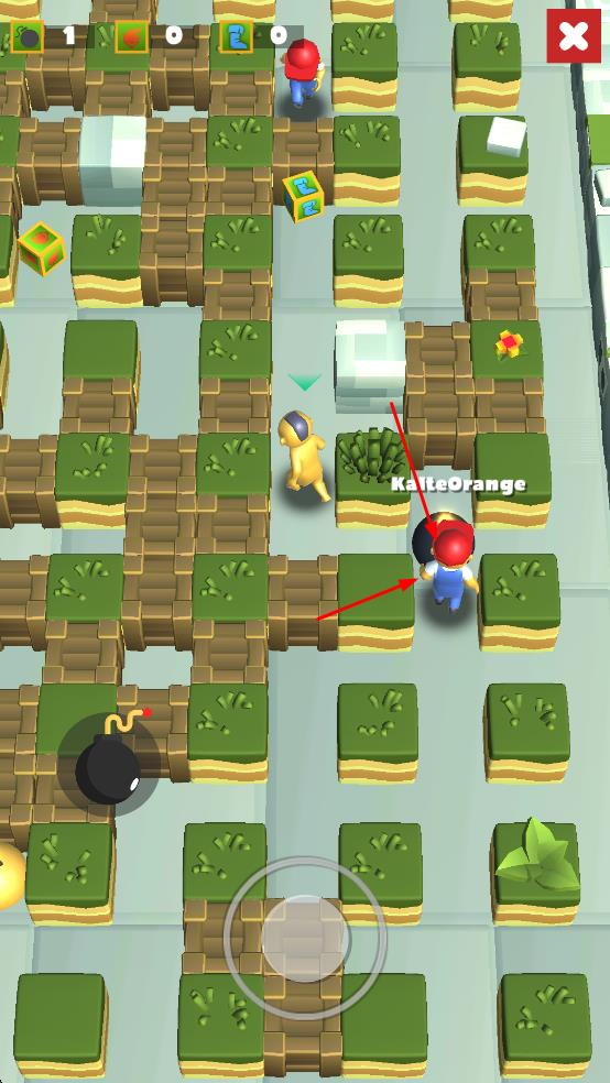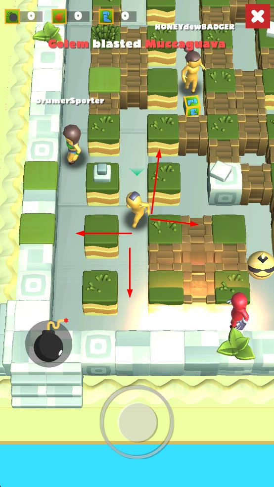 2、点击炸弹按钮来放置炸弹,借助爆炸的效果可以摧毁障碍物或者攻击对手,以此积累对战中的优势。