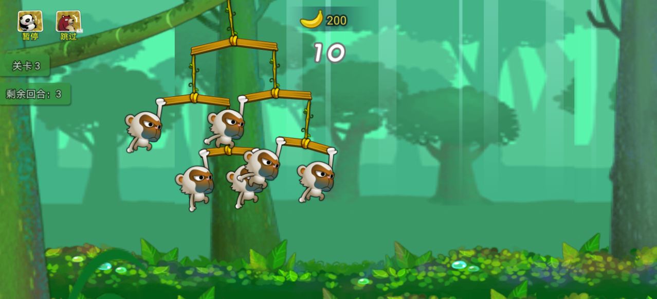 《猴子太疯狂》是一款十分经典的横版冒险闯关游戏。在这片充满神秘色彩的森林里,遍布着各式各样的试炼关卡。玩家需要操控卡通形象的猴子,巧妙避开重重障碍与陷阱,以最快的速度抵达终点,开启一段欢乐的丛林冒险之旅。游戏中,玩家要通过接力移动的方式操控小猴子,收集规定数量的香蕉。由于每一关的猴子数量有限,因此非常考验玩家的操作技巧。