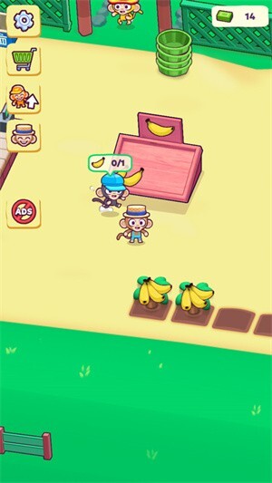 2、游戏的核心目标是助力猴子拓展业务,保障超市持续兴旺,让它成为周边所有动物优先选择的购物场所。