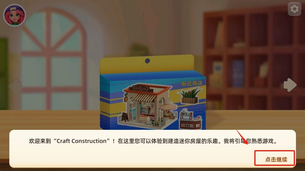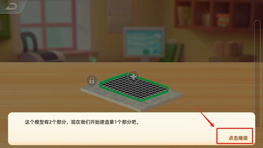 1、点击“继续”按钮,进入游戏的模型建造教程,开始学习建造。