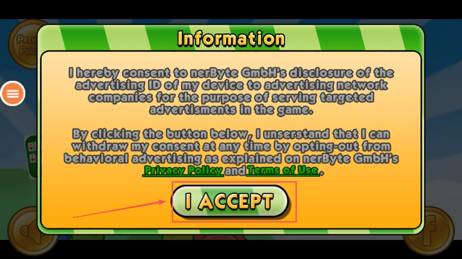 1、打开超级马里奥大叔后,先弹出游戏协议窗口,在窗口底部找到同意选项并点击,完成协议确认后进入游戏主界面。