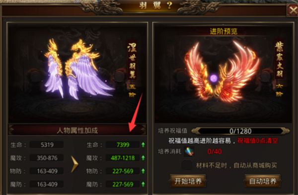 2、一旦成功选定元神,便可继续完成主线任务,随后羽翼系统将会解锁。每个阶段的羽翼,不但能提升角色属性,外观更是炫酷华丽。
