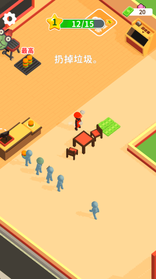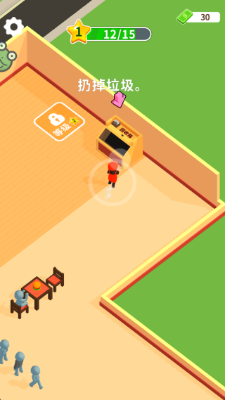 3完成垃圾清理任务可获得相应奖励,随着进度推进能逐步开放新的场景区域,进而布置更多桌椅设施。