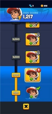 6、跑酷分数越高,可获取的升级奖励就越丰厚,每个角色都具备技能系统。举例来说,杰克的一阶段技能是获得一个磁铁,二阶段技能为拾取金币时可为滑板充能,三阶段技能则是在开始游戏时就能得到一块滑板。