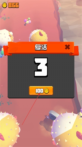 4、当恐龙被前方的障碍或是道具击中,可以选择花费100金币进行复活。