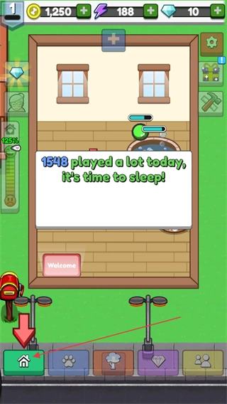 1、点击Welcome进入游戏,待触发睡觉提示后,打开商店界面。
