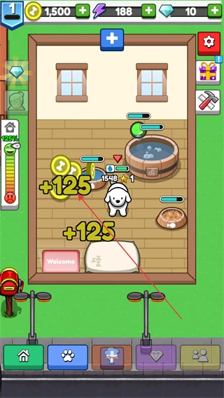 4、宠物使用床后,可获得金币奖励,以此推动宠物养成流程的进行。