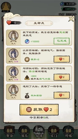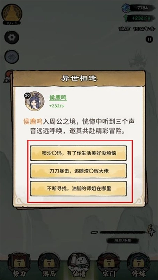 2、进入剧情分支界面后,挑选相应的剧情选项,以此触发对应的修仙机缘,从而推动角色的成长进程。