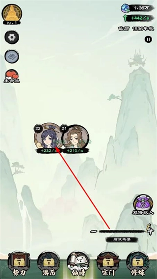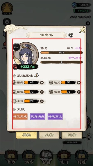 3、在修仙场景下,点击想要查看属性的人物头像,就能弹出属性面板。