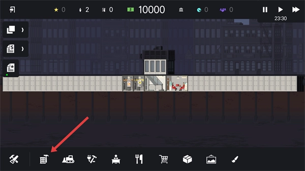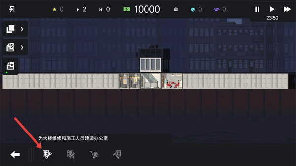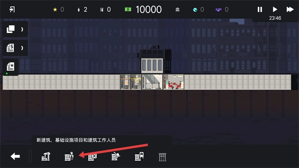 2、点击界面下方功能栏里的对应选项,解锁与建筑相关的操作功能,以便为大楼搭建工作做好准备。