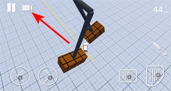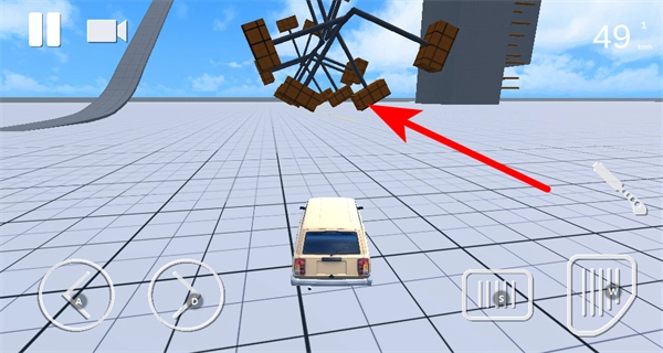 3、驾驶车辆与方块结构的障碍物进行碰撞或互动,体验道具挤压车辆后车辆状态的改变,也能点击左上角的按钮来切换当前的驾驶视角。