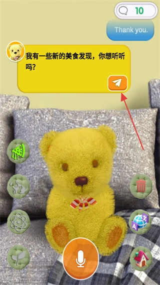 3、点击小熊图标按钮,可触发毛绒熊的特定互动动作,其他同类按钮对应不同动作。