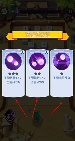 2、消除一定数量方块后,选择增益技能,提升后续弹射消除的效率。