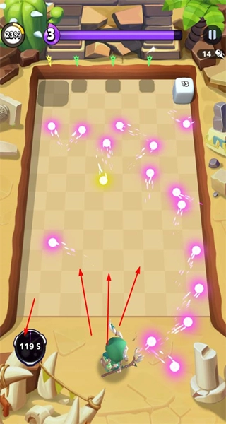 化身掌控魔法球的勇士,通过精准操控发射魔法球,魔法球具备独特的反弹轨迹,需精准判断角度与力度,确保小球能有效击中目标砖块,考验操作精准度。