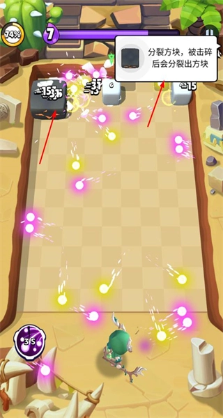 4、攻击分裂方块,使其破碎后分裂出更多方块,增加消除目标的同时,提升关卡得分效率。