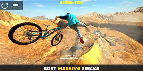 3、将化身山地自行车手,在丘陵地带的陡峭高坡间风驰电掣地穿梭,借助各类坡道腾空而起,完成精彩特技动作。