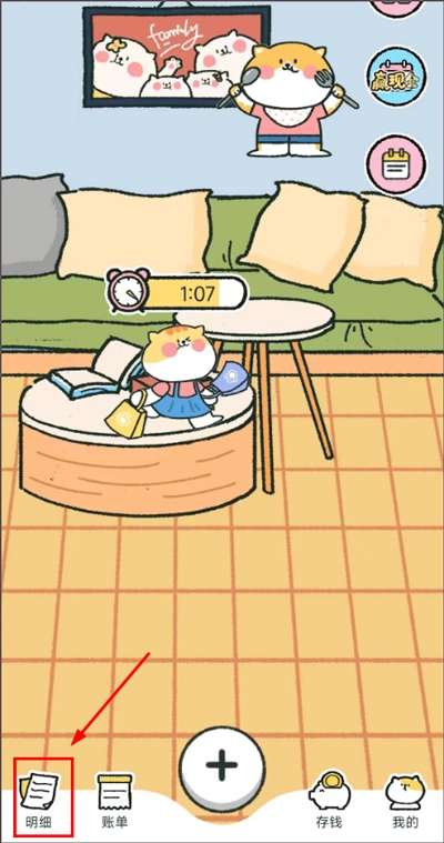 1、登录喵喵记账,点击首页下方的【明细】