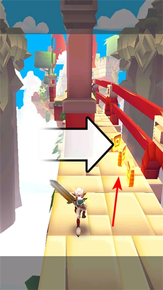 4、按照方向操控角色向上行进,跨越路径中的地形变化,这是适应跑酷场景的重要操作,持续调整移动方向可让角色顺利通过复杂路段,完成挑战。