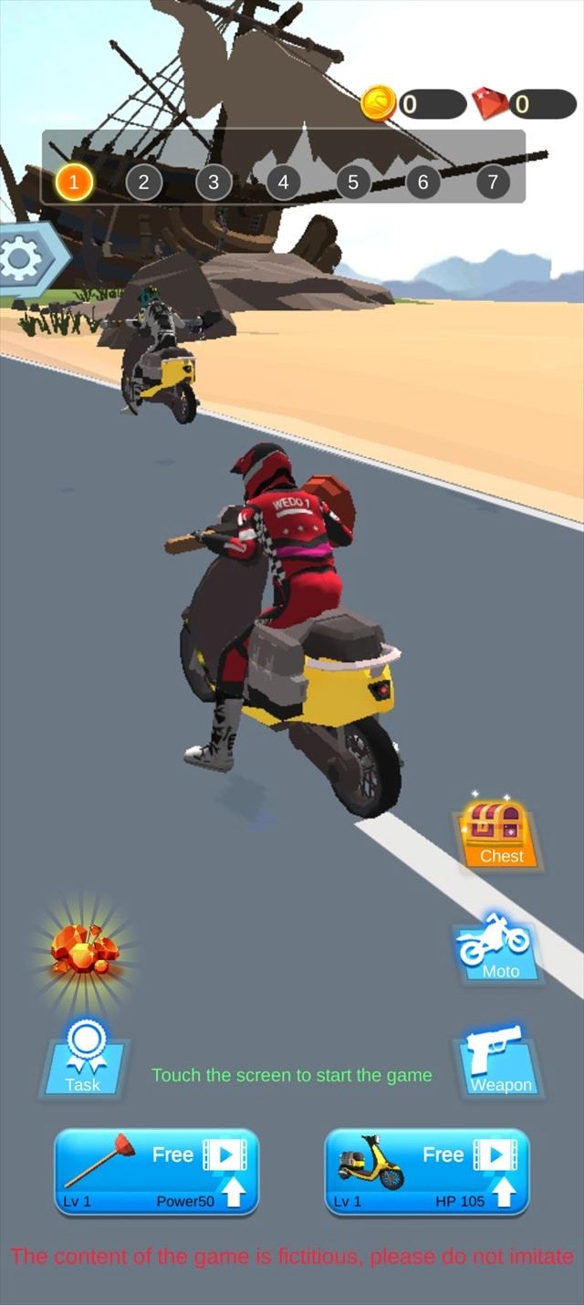 1、打开暴力摩托6游戏,点击屏幕开始游玩