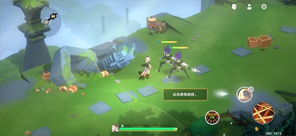 当敌人出现时,可通过右侧的攻击按键展开战斗——其中较大的按钮是普通攻击键,较小的则对应战技与大招。