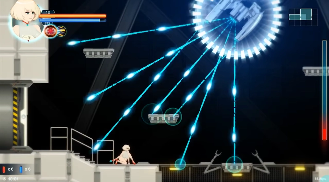 最终关卡的反应堆BOSS堪称棘手至极,不仅血量厚实、恢复速度快,只要受到一点伤害就会立刻开启无敌护盾;它的火球攻击带有追踪效果,判定范围还特别广,激光射线的覆盖范围也极大,角度接近200度且不受晃动干扰——虽说火球和激光的单次伤害不高,但攻击频率却高得吓人,最让人头疼的是那个无敌盾,一旦碰到就会掉血。不过玩家也有应对办法,通过滑铲从BOSS脚底下钻过去就能躲开这些攻击。